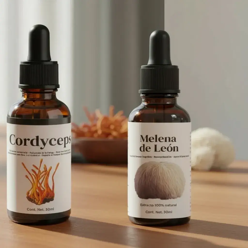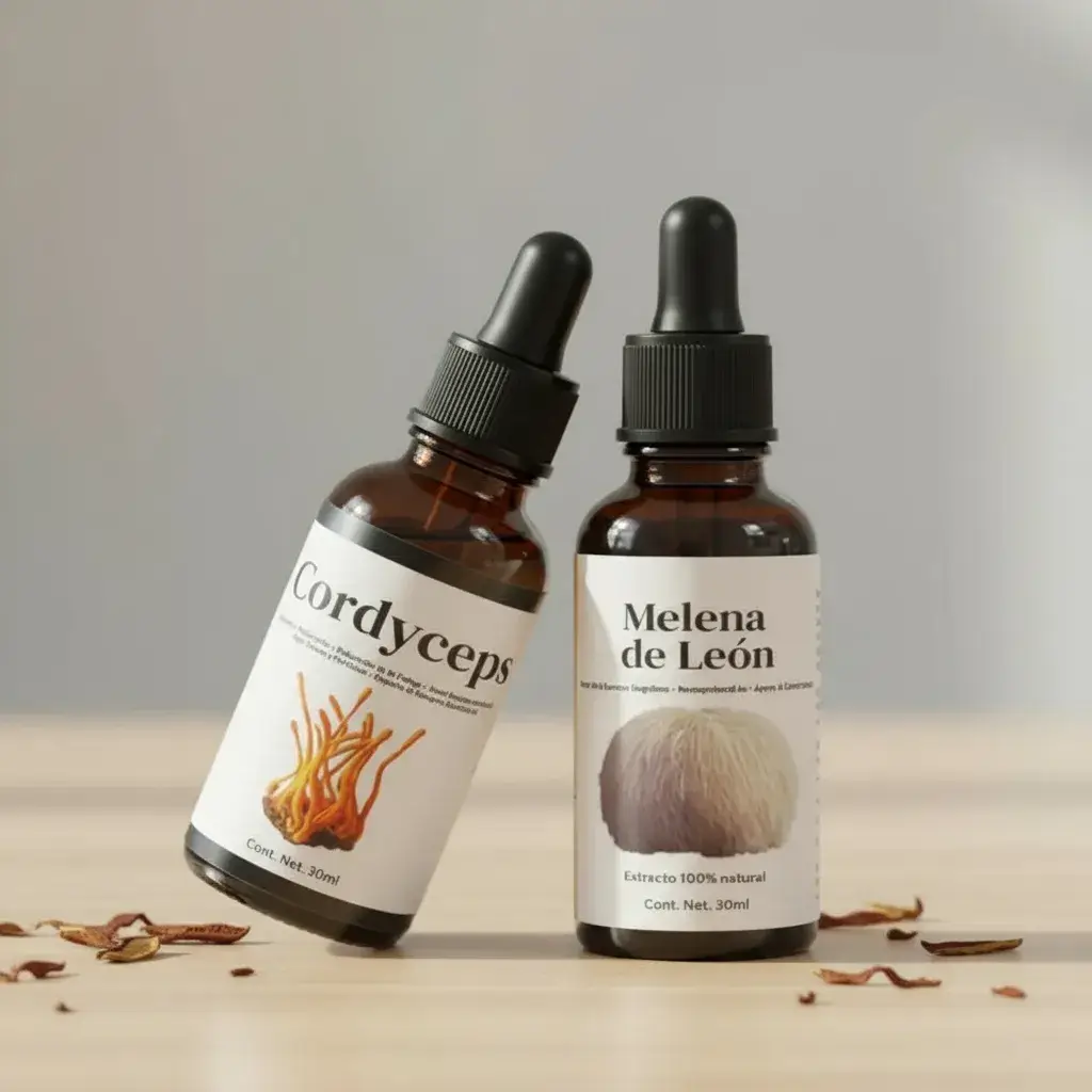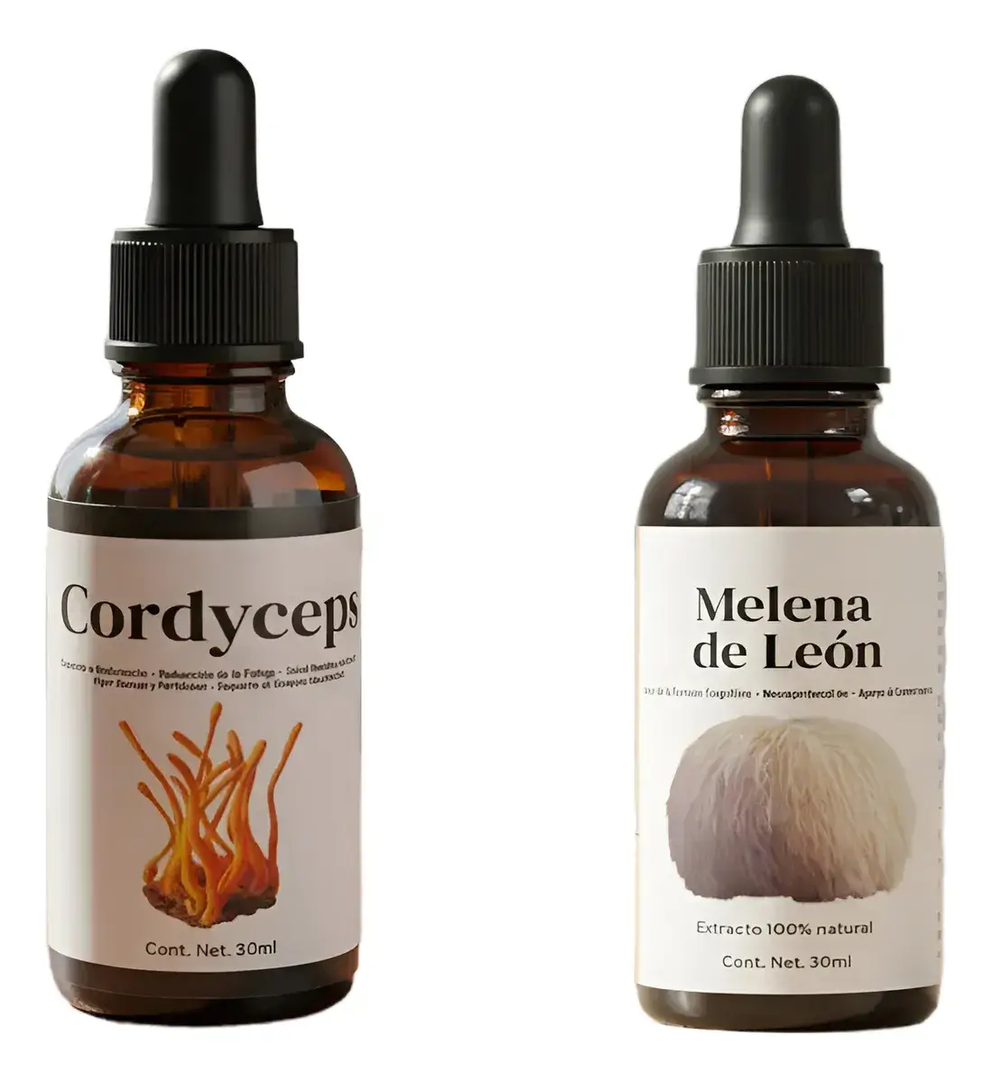 Pack de extractos líquidos: Melena de León + Cordyceps. La combinación definitiva para aumentar tu energía física y tu claridad mental simultáneamente.